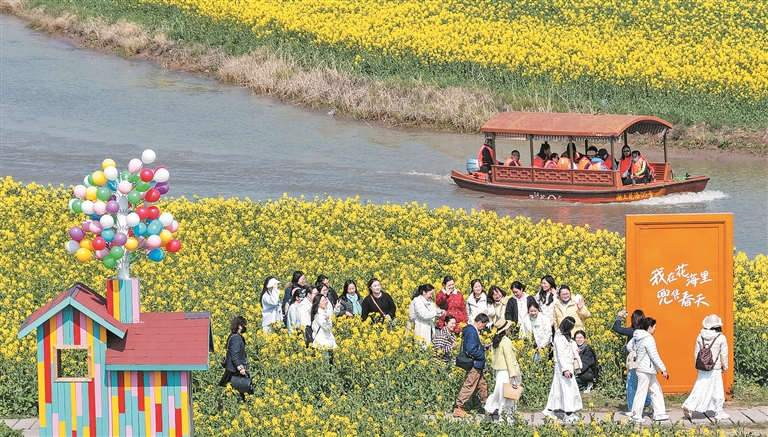 “若待上林花似锦,出门俱是看花人。”赏花传统,自古有之,延续至今,已成为中国人独有的文化印记。“赏花经济”不仅为城乡发展增添色彩,更日益成为助力乡村振兴、建设生态文明的重要抓手。从北京玉渊潭的樱花到江西婺源的油菜花,从江苏苏州的玉兰花到新疆伊犁的杏花……翻开“赏花日历”,浏览“赏花地图”,可谓是“周周有惊喜,处处皆花海”。神州大地扑鼻而来的花香,不仅点亮了市民游客的朋友圈,还成为了撬动文旅消费的“美丽引擎”。